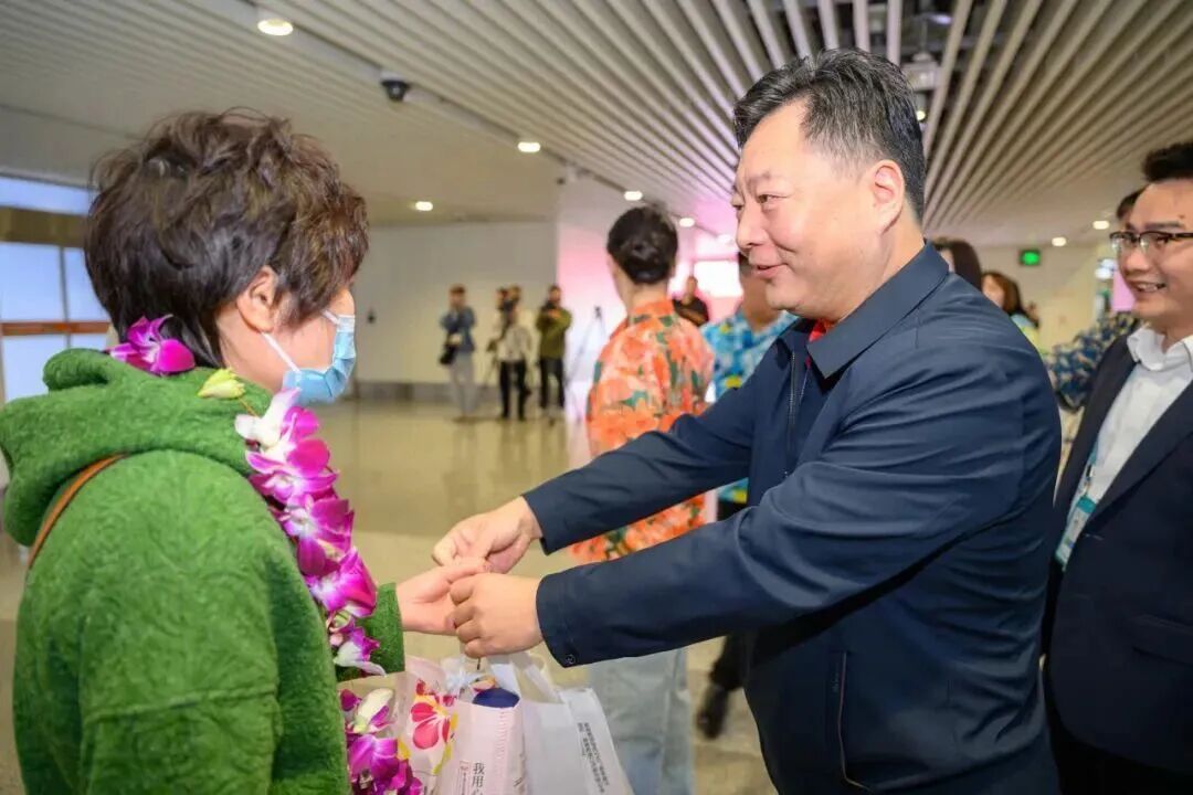 1月1日,由省旅文厅主办,省旅游协会承办的2025年首批入岛游客欢迎仪式在美兰机场T2航站楼到达大厅举行,省旅文厅厅长陈铁军带领协会全体人员给150名游客送上了充满海南特色的新年礼物以及温馨的新年祝福,希望他们在海南度过一个难忘的假期。