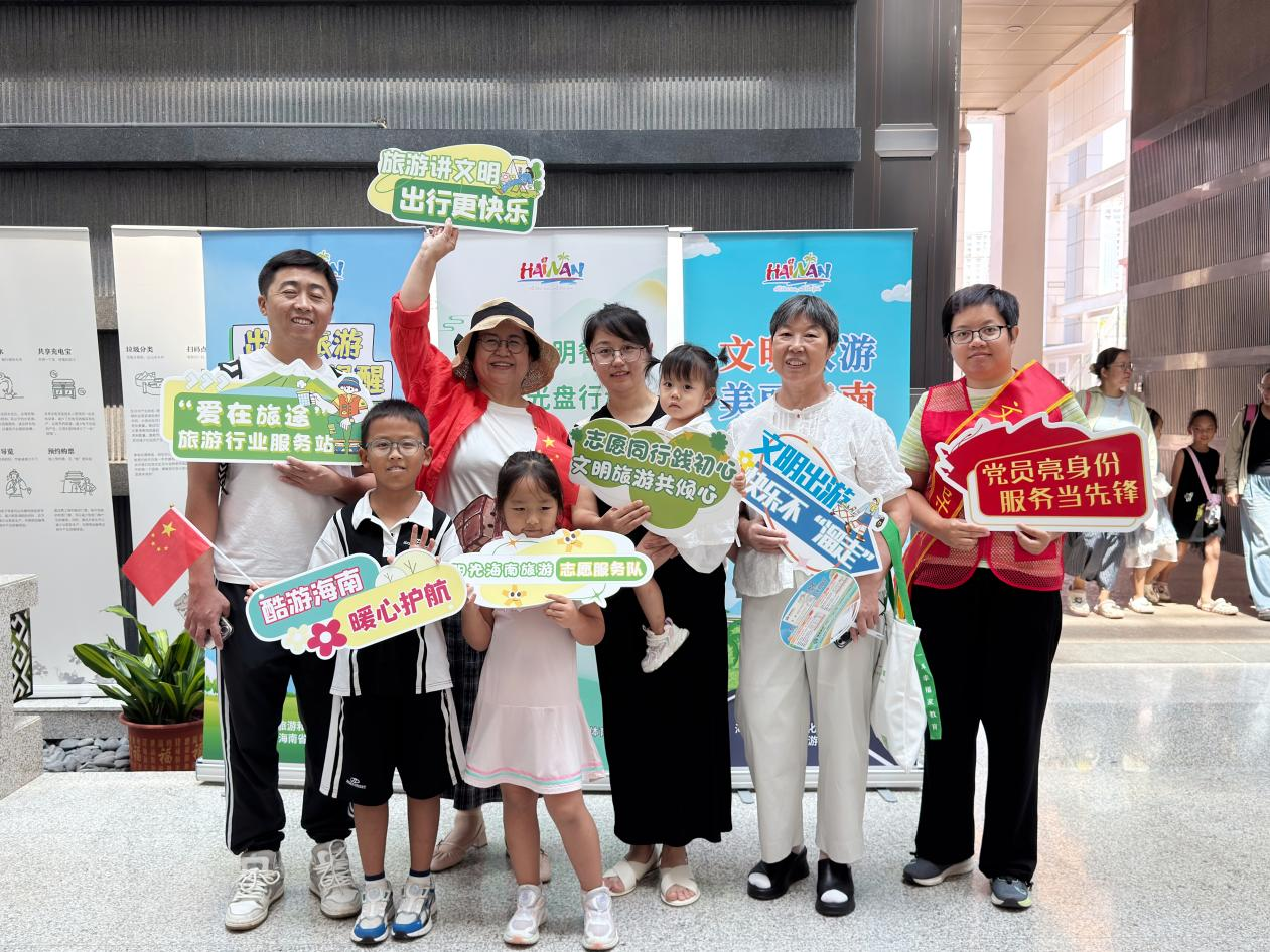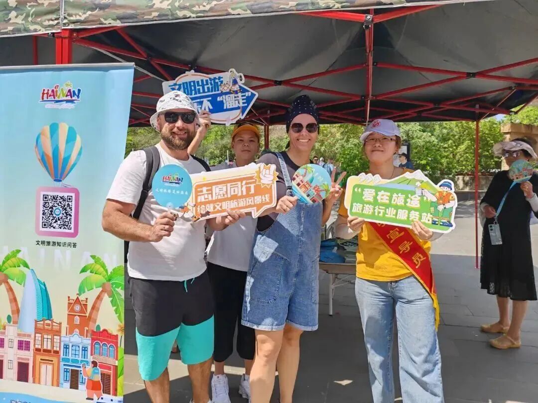 活动现场设计了“文明旅游知识问答”“垃圾不落地挑战赛”等互动游戏,还搭建了“文明志愿行摄影角”,游客手持“文明出游”“志愿同行”等标语牌拍照留念,倡导以志愿之力擦亮自贸港文明底色。