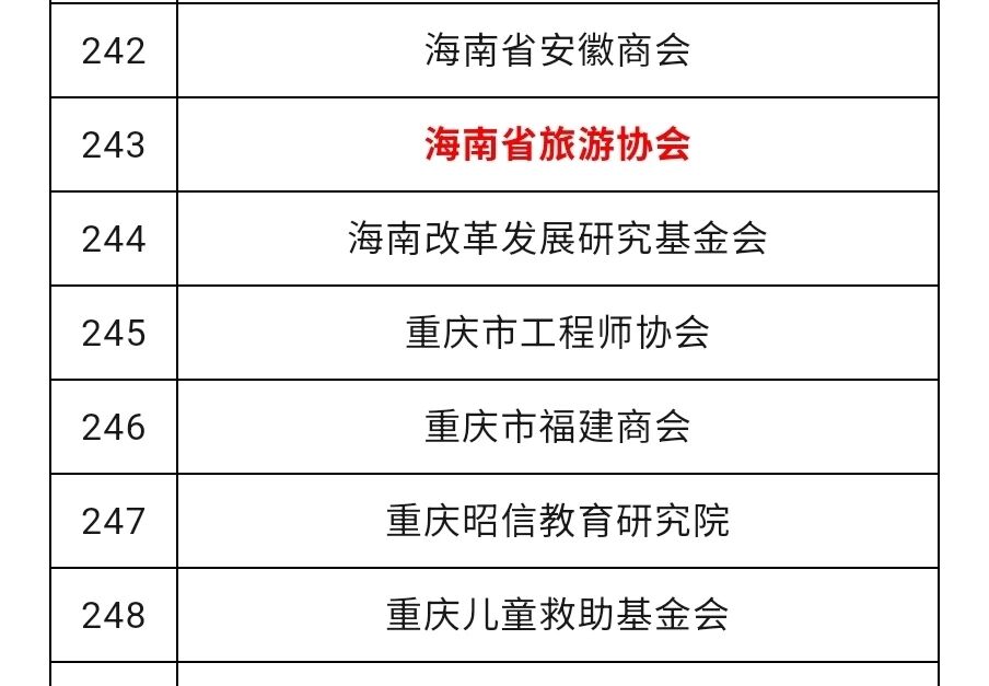 海南省旅游协会入围第五次“全国先进社会组织”拟表彰名单
