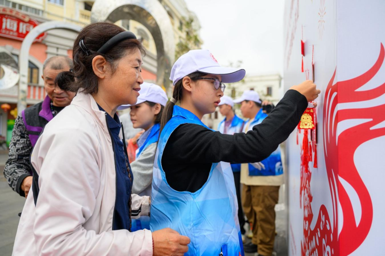 趣味十足的互动游戏成为现场最吸睛的亮点,三大特色游戏让游客在玩乐中传递文明、收获喜悦。在“新年挂承诺”区域,游客们有序领取新春贺语承诺卡,一笔一划写下自己的新春心愿与文明承诺,“文明出游,不负美景”“马年顺遂,友善互助”“诚信游览,守护骑楼”等字样温暖有力,书写完成后,大家亲手将承诺卡悬挂至指定区域,密密麻麻的承诺卡随风摇曳,形成一道独具特色的集体新春承诺景观,氛围感拉满。