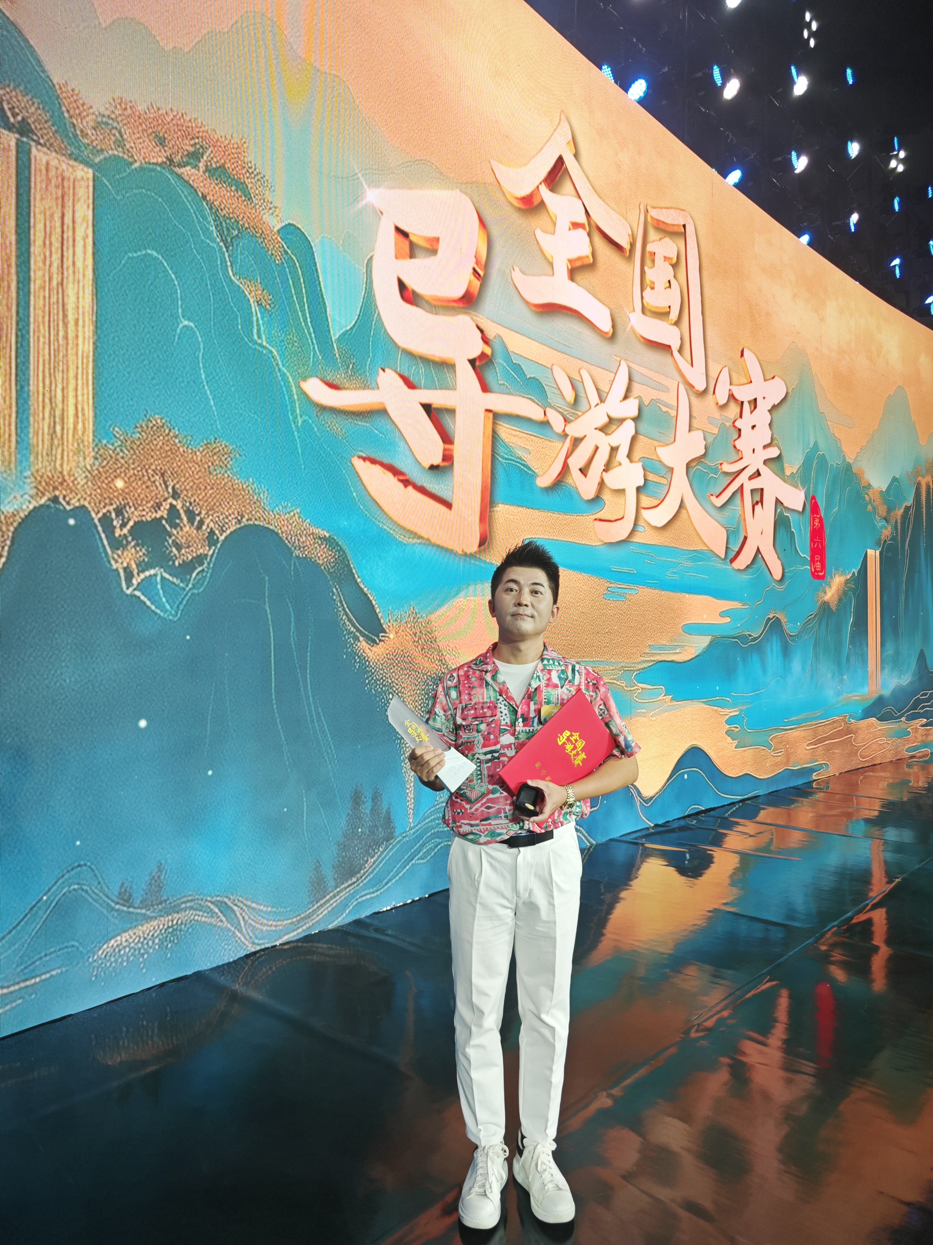 海南赛区共派出3名选手参赛,包括中文组选手王磊、徐晓燕以及英文组选手薛罗莎。选手王磊在比赛中表现突出,他紧扣“阳光海南 度假天堂”主题,以富有感染力的表达,不仅向评委与现场观众推介了海南独特民俗文化,更生动传播了海南自贸港的建设成果与魅力。其专业的讲解能力、饱满的精神状态,以及对海南旅游文化的深刻理解,赢得了评委的一致好评,最终斩获 “优秀风采选手” 奖。