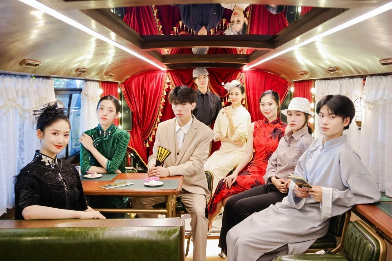 老爸茶·海口巴士项目以弘扬海南本土文化为核心理念,通过场景化改造开创沉浸式文旅新范式。在硬件载体方面,对巴士整体形象进行南洋风情主题改造,以海南省花三角梅为灵感,打造全车粉色系视觉主题,并配置全景玻璃天幕、音乐舞台和南洋复古吧台;在文化体验层面,植入海南地道“老爸茶”餐饮服务、融入非遗文化展示、音乐表演及互动活动,构建“茶旅+演绎+文化”的复合场景;在品牌叙事体系上,通过对旅游线路进行故事化包装、为乘务人员设计特色制服、开发定制文创产品,形成沉浸式旅游新模式,极大地丰富了游客的旅行体验。