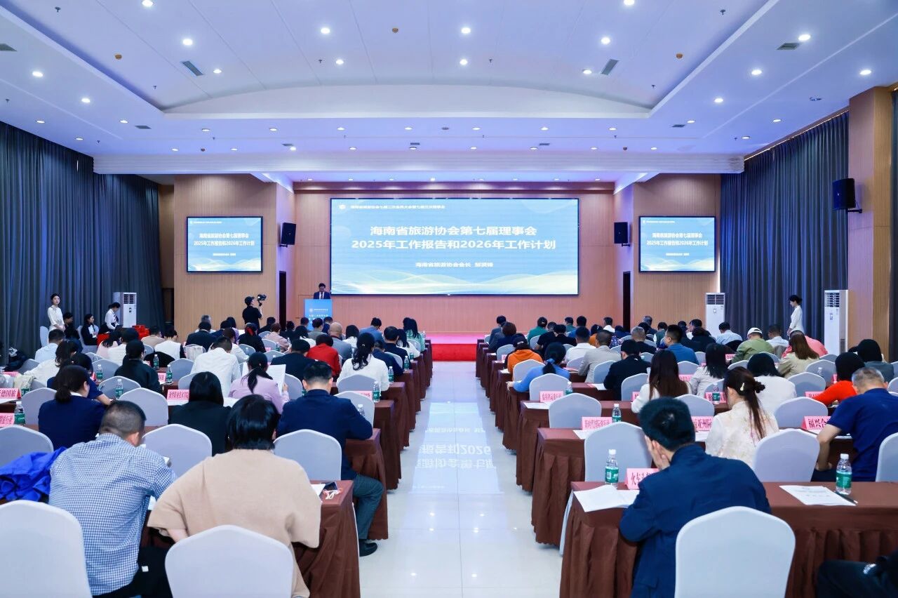1月21日,2026年海南省旅游和文化广电体育工作会议在海口召开。会上,厅党组书记、厅长陈铁军传达了刘小明省长关于全省旅文工作的批示精神,全面总结2025年全省文旅事业发展成效,锚定“十五五”开局之年战略目标,部署十三项重点工作。会议还传达了全国文化和旅游厅局长会议、全国广播电视工作会议、全国体育局长会议、全国文物局长会议精神。会议由厅党组成员、副厅长宋奇慧主持。省旅游协会会长邹贤锋参加会议,并于海南省旅游协会七届二次会员大会上重点传达此次会议精神,组织全体会员学习领会会议部署要求。未来,协会将充分发挥行业组织作用,聚焦会议提出的产业发展重点,凝聚行业合力落实封关运作背景下的旅游产业发展要求,助力海南加快建设国际旅游消费中心、文化强省和旅游强省,为“十五五”海南旅文事业开局起步赋能增效。
